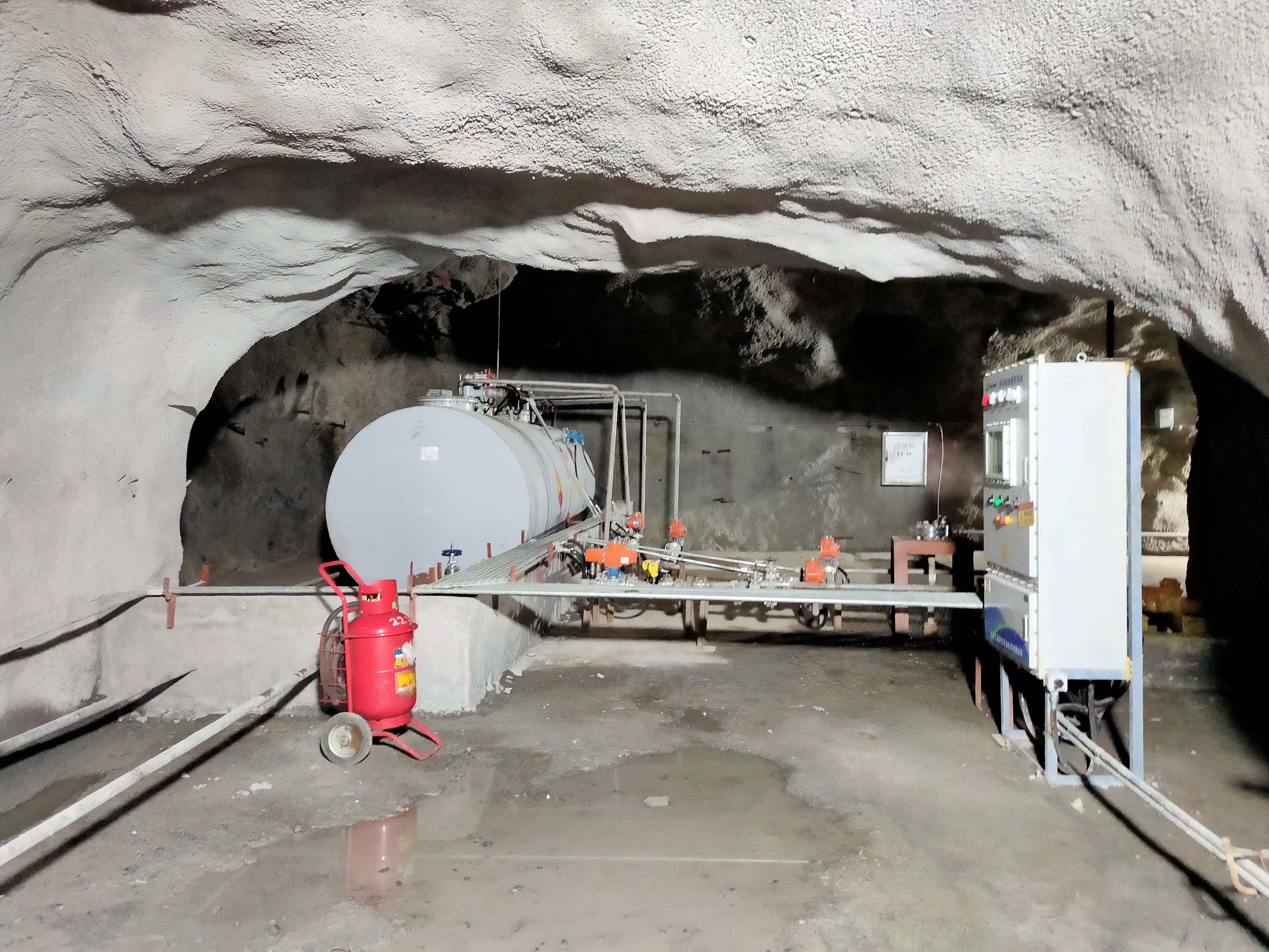 凡口鉛鋅礦井下680米智能供油系統(tǒng) 目前正有序施工中, 預計9月底完工并投入使用。該項目為全國首創(chuàng), 由韶關(guān)企業(yè)進行技術(shù)攻堅 并申請多項國家專利, 擬申報吉尼斯世界紀錄 “全球最深的智能供油系統(tǒng)”。 凡口鉛鋅礦井下智能供油系統(tǒng) 需在地面設(shè)置橇裝加油裝置, 并分別在地下 330米、480米和680米處 建設(shè)智能化供油系統(tǒng), 通過鉆孔鋪設(shè)輸油管線, 將油品從地面輸送到井下。 地下330米智能加油點, 目前已進入收尾階段, 現(xiàn)場有兩根 從地面裝置接下來的輸油管, 用于工程車加油, 另一邊也有兩根輸油管輸送到 地下480米和680米的智能加油點。 別看油管很細,鉆孔不大, 但施工難度并不小, 全長3千多米的輸油管, 垂直打孔偏差不能超過1米。 作為亞洲最大的 單體鉛鋅銀礦生產(chǎn)基地, 凡口鉛鋅礦 有井下工程車輛和設(shè)備100多臺, 井下用油量大。 井下智能化供油系統(tǒng)啟用后, 不僅解決井下用油安全、環(huán)保風險, 同時降低生產(chǎn)用油成本, 推進凡口鉛鋅礦建設(shè)智能化礦山, 實現(xiàn)“無人開采”。 如果鉆孔偏差太大,就找不到鉆下來的孔,影響輸油管道的布設(shè),增大成本。3千多米有5千多個焊接點,所有的焊接口都要達到高壓管道的焊接要求,這個項目是全國首創(chuàng),在全國所有礦山企業(yè)中,我們是首次使用通過輸油管道往井下輸油,并且實現(xiàn)智能控制的方案。 這個月底把地下330米加油點完工,開始加油,9月底把底下480米和680米開通使用。希望通過這個項目打造創(chuàng)新科技的韶關(guān)樣板,把先進的經(jīng)驗和技術(shù)推廣到全省、全國乃至全球。